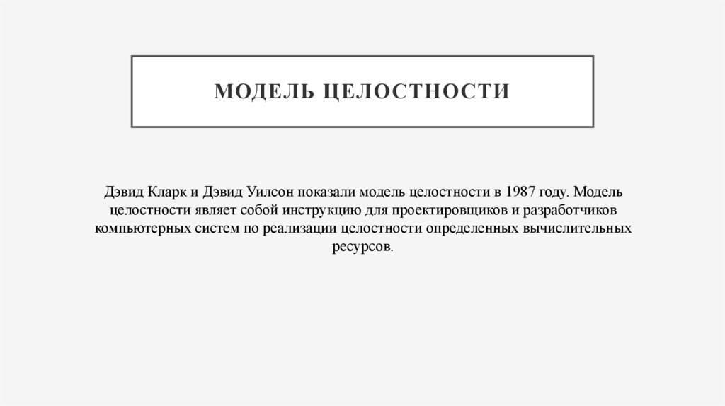 МОДЕЛЬ ЦЕЛОСТНОСТИДэвид Кларк и Дэвид Уилсон показали модель целостности в 1987 году. Модель