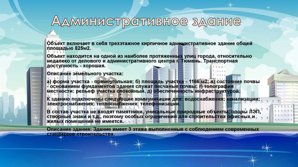 Объект включает в себя трехэтажное кирпичное административное здание общейплощадью 825м2.