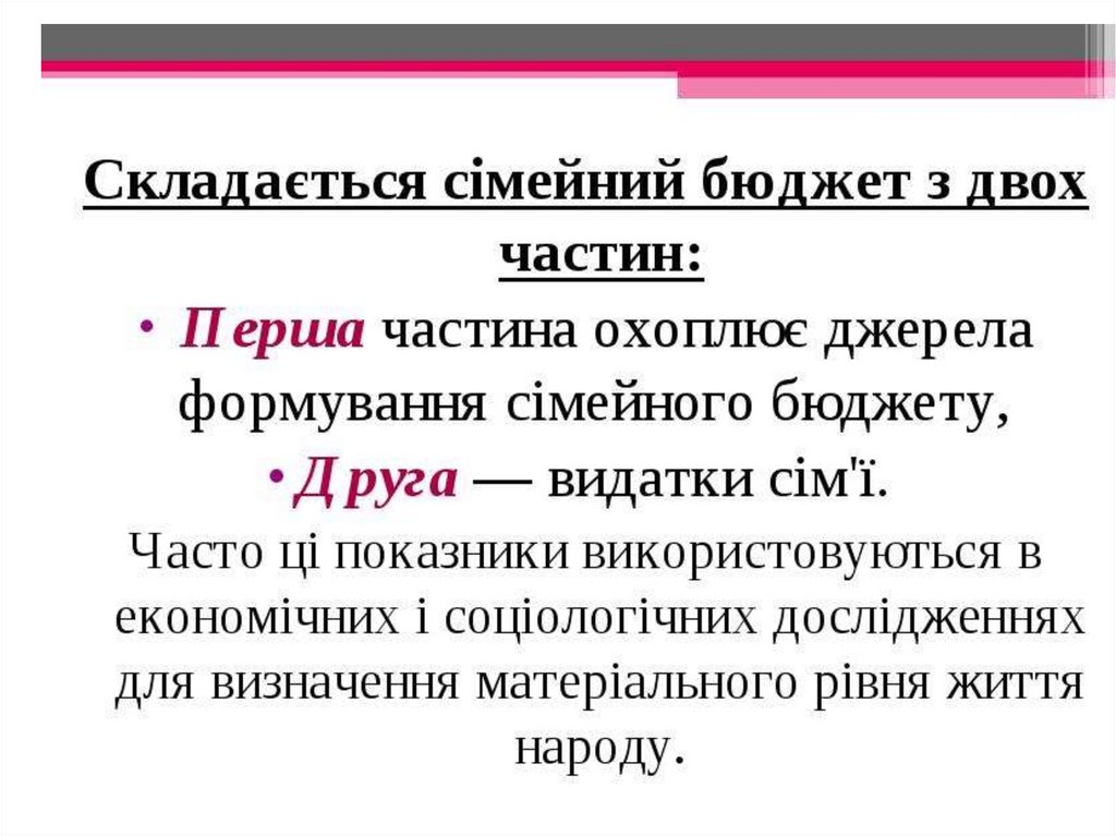 Cімейний бюджет. Доходи і витрати