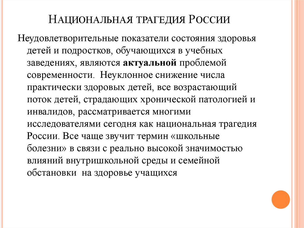 НАЦИОНАЛЬНАЯ ТРАГЕДИЯ РОССИИНеудовлетворительные показатели состояния здоровья