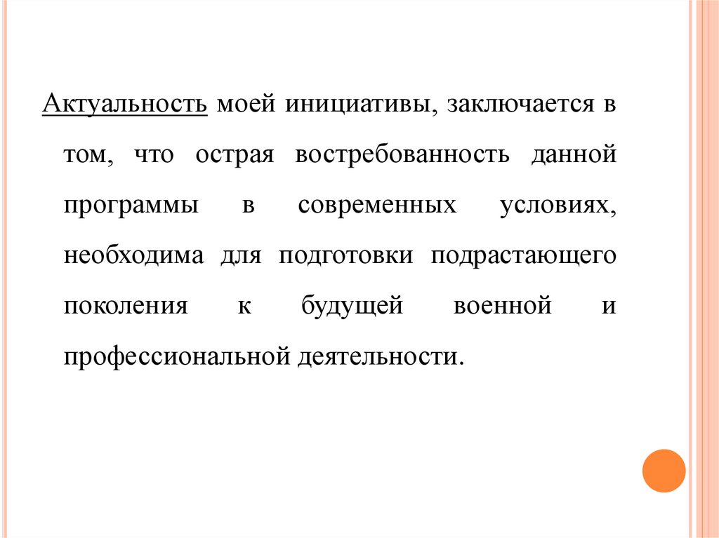 Актуальность моей инициативы, заключается втом, что острая востребованность данной