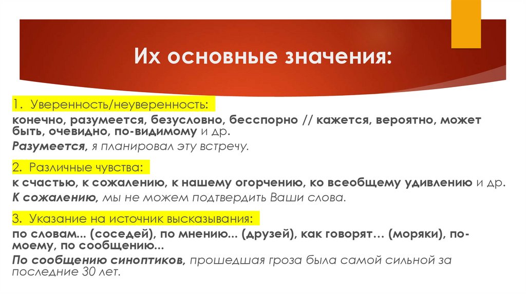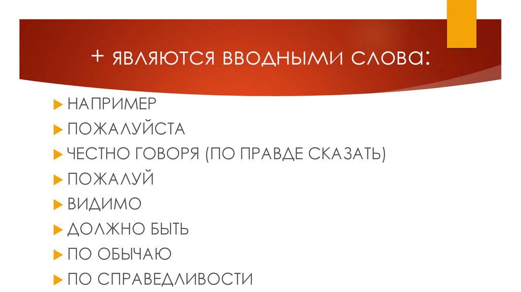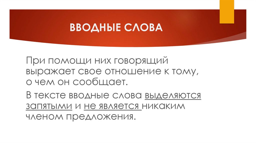 ВВОДНЫЕ СЛОВАПри помощи них говорящий