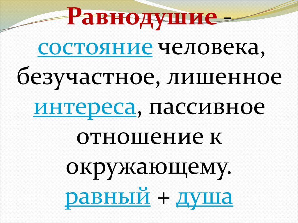 Как вы понимаете слово«равнодушие»?