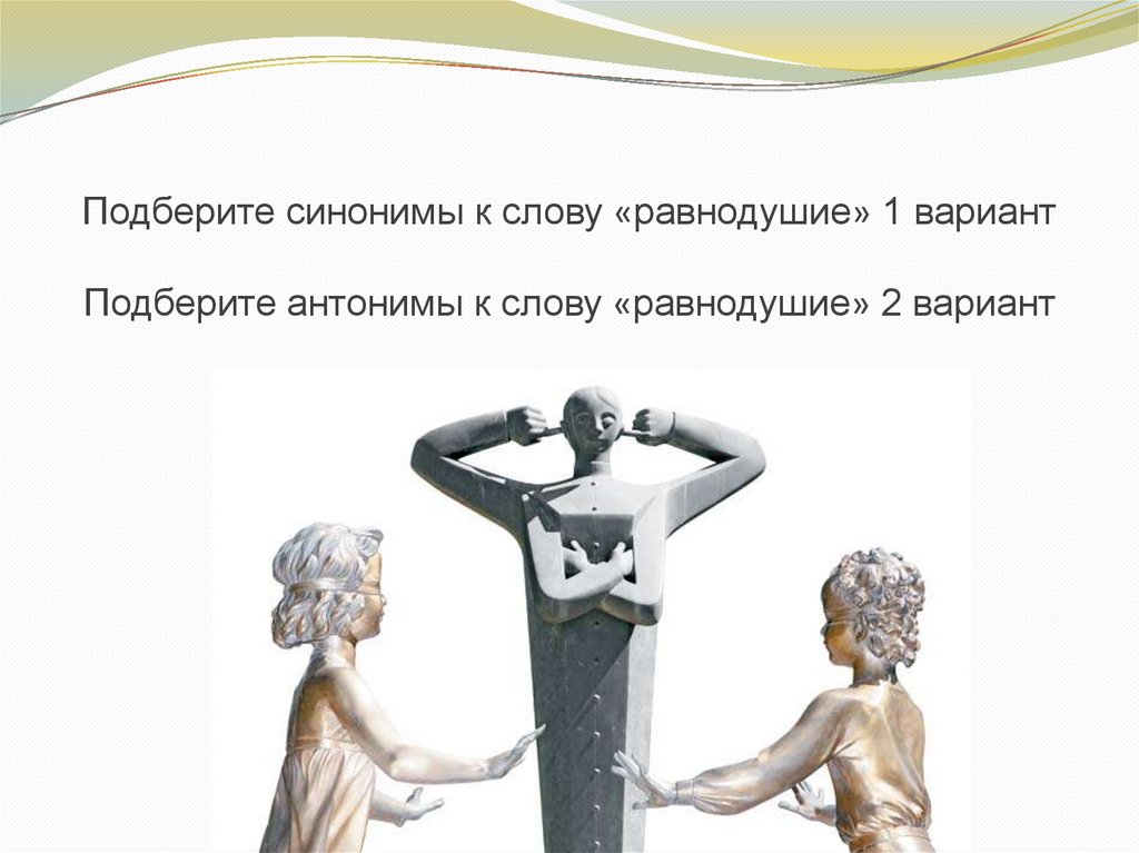Подберите синонимы к слову «равнодушие» 1 вариантПодберите антонимы к слову «равнодушие» 2 вариант