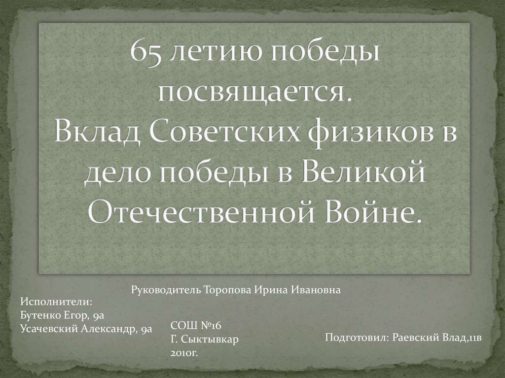 Вклад Советских физиков в дело победы в Великой Отечественной войне