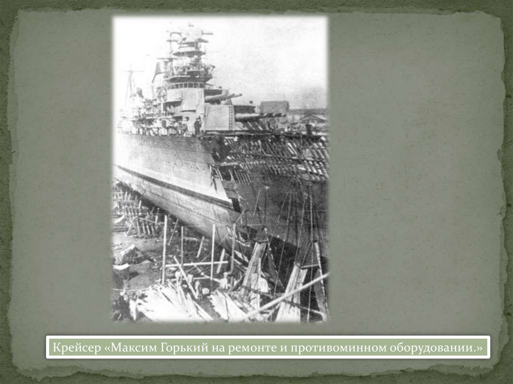 Крейсер «Максим Горький на ремонте и противоминном оборудовании.»13.