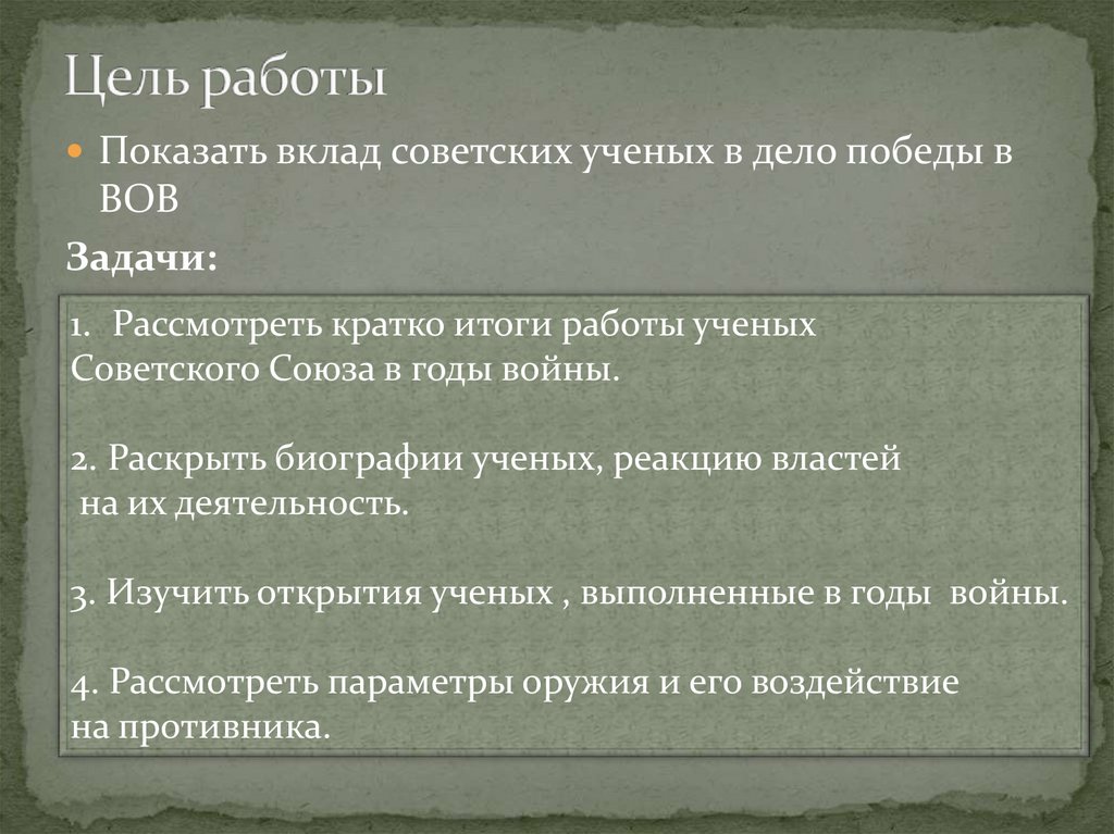 3. Изучить открытия ученых , выполненные в годы войны.
