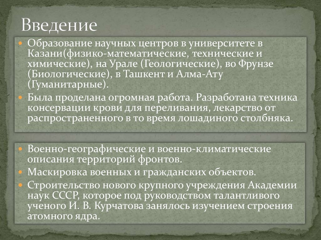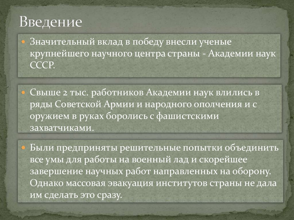 В годы войны ученые внесли большой вклад в развитиенауки, разработали новые эффективные методы