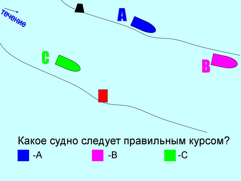 Какое судно следует правильным курсом?-А