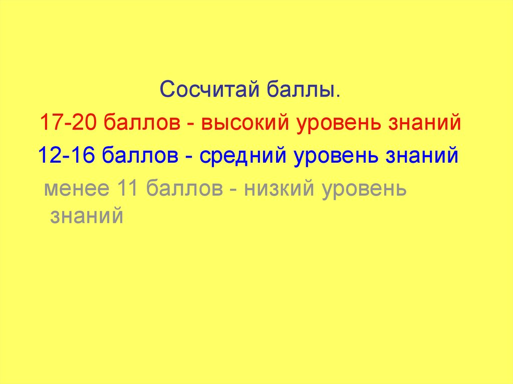 Сосчитай баллы.17-20 баллов - высокий уровень знаний