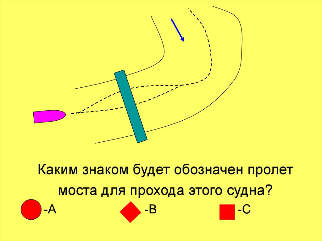 Каким знаком будет обозначен пролетмоста для прохода этого судна?