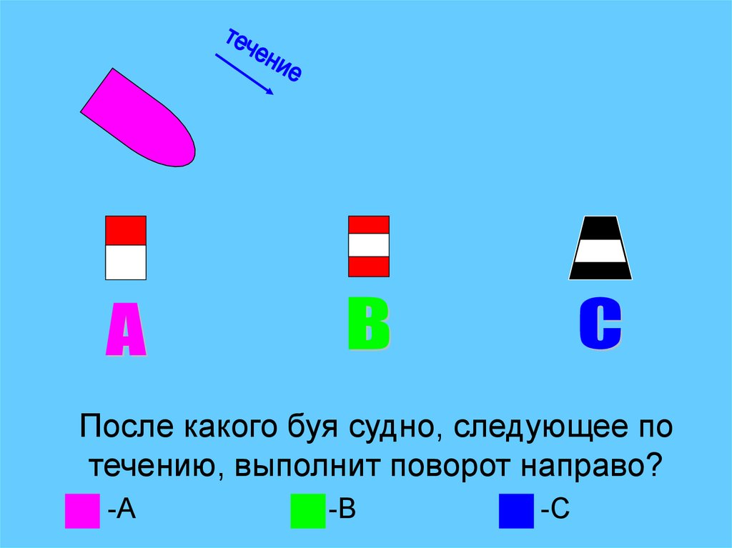 После какого буя судно, следующее потечению, выполнит поворот направо?