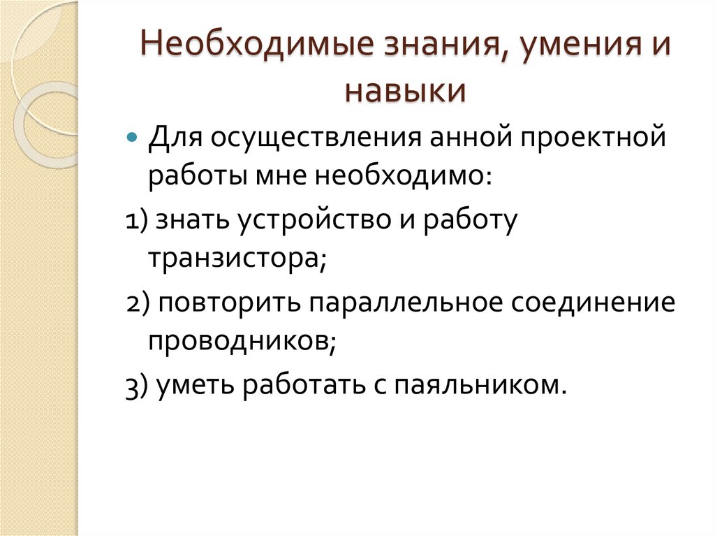 Необходимые знания, умения инавыки