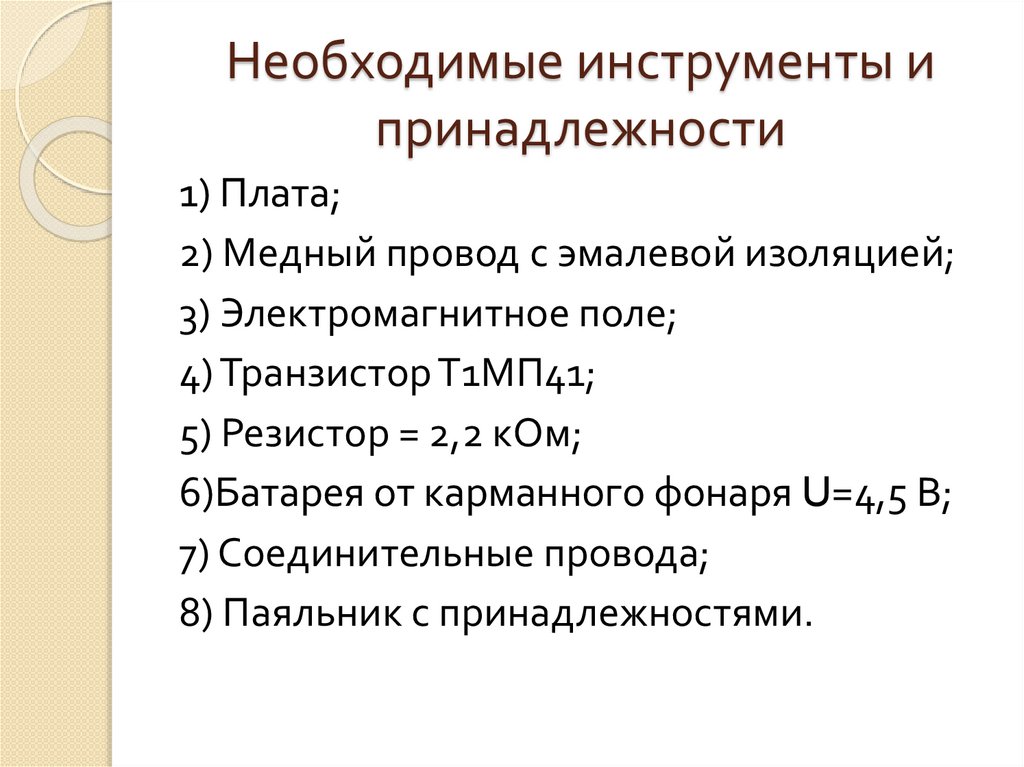 Необходимые инструменты ипринадлежности