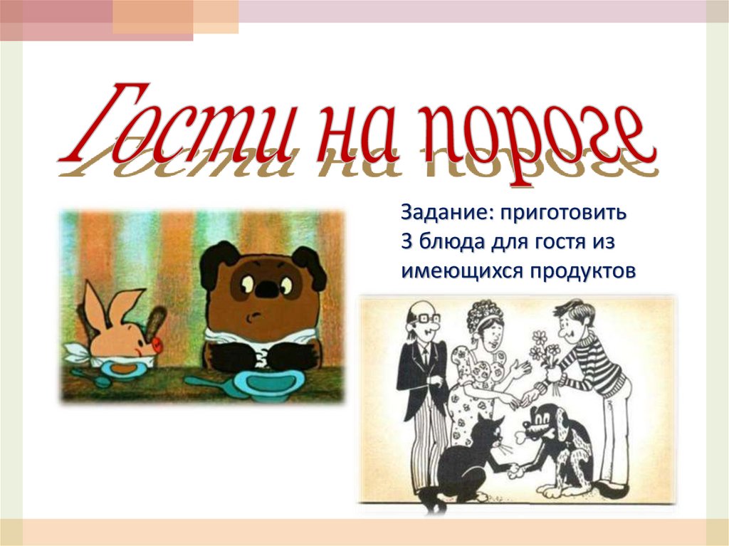 Задание: приготовить3 блюда для гостя из
