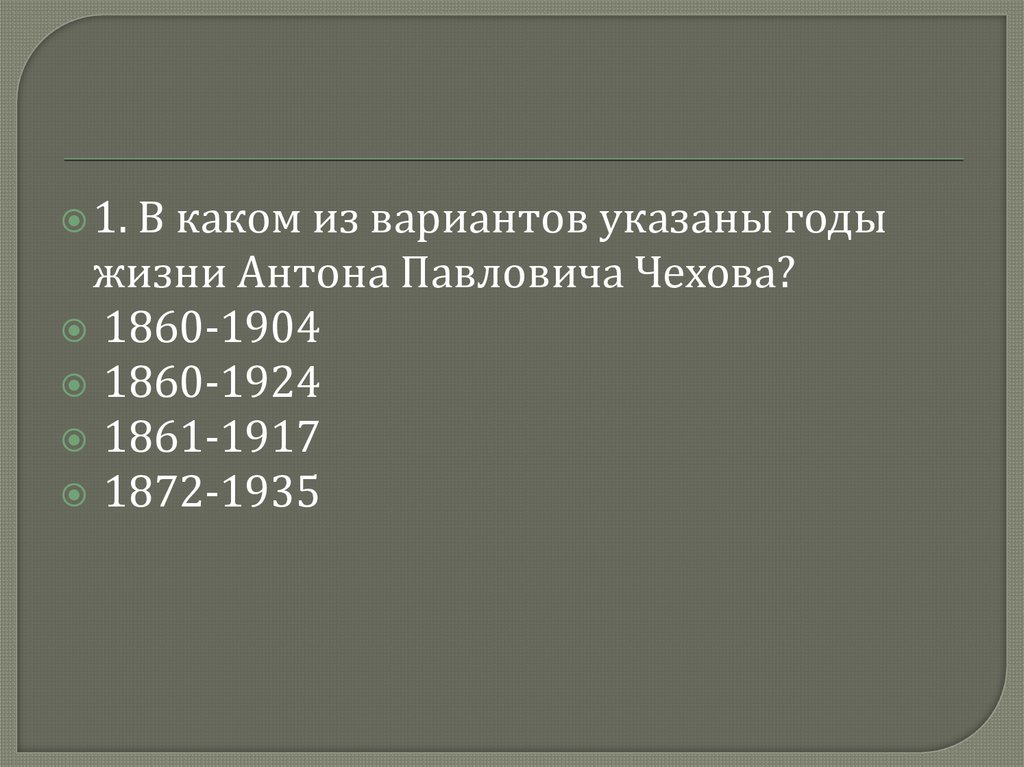 Антон Павлович Чехов. Тест