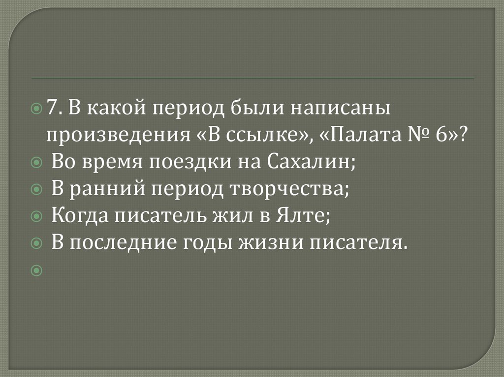 произведения «В ссылке», «Палата № 6»?