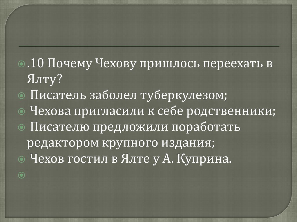 .10Почему Чехову пришлось переехать в