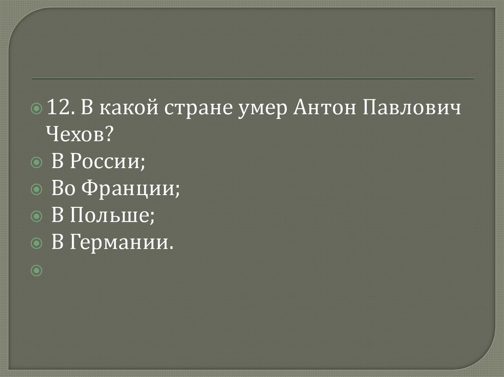 12.В какой стране умер Антон Павлович
