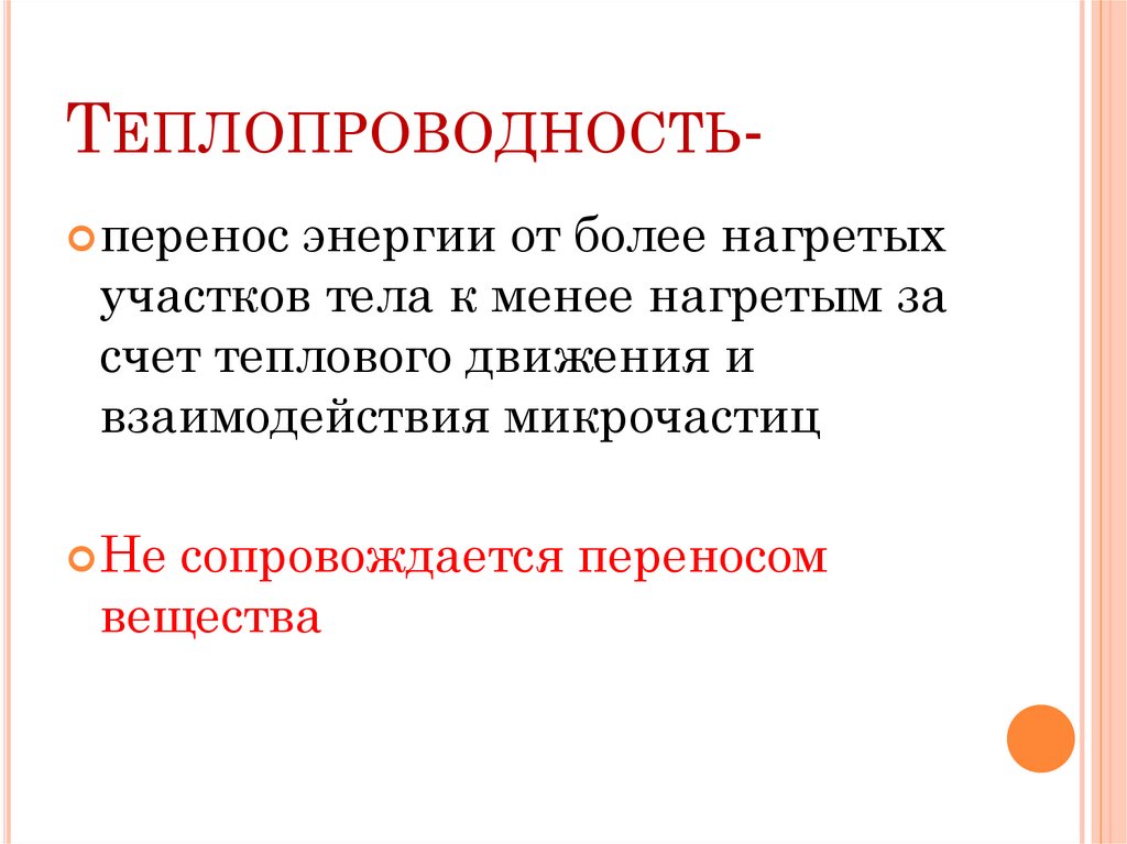 ТЕПЛОПРОВОДНОСТЬ переносэнергии от более нагретых