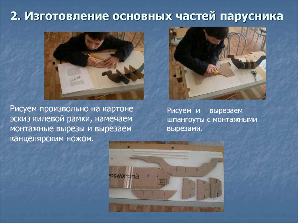 2. Изготовление основных частей парусникаРисуем произвольно на картоне