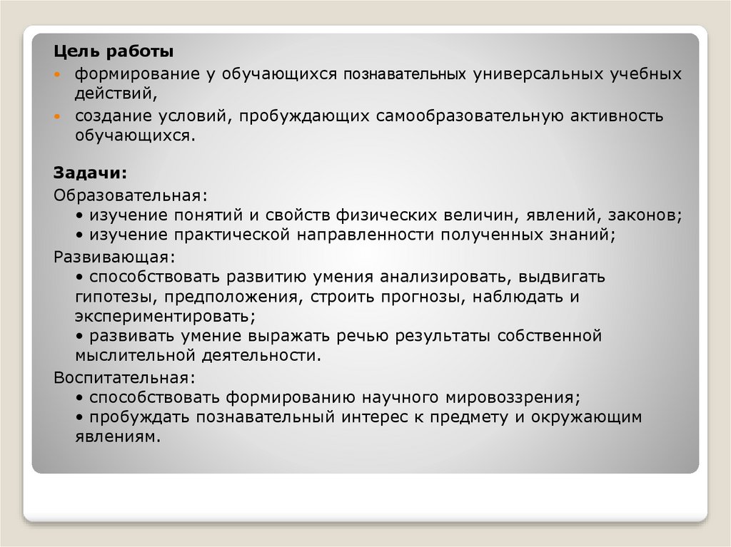 Цель работыформирование у обучающихся познавательных универсальных учебных