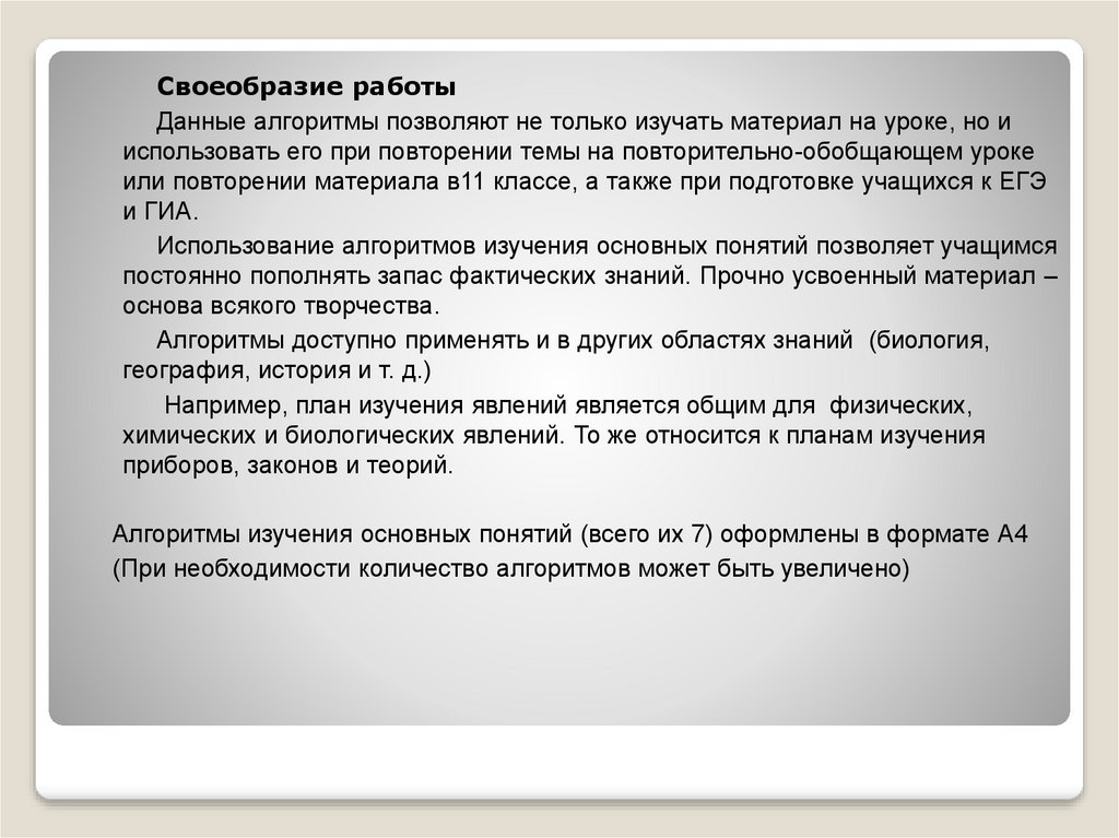 Использование алгоритмов изучения основных понятий позволяет учащимся