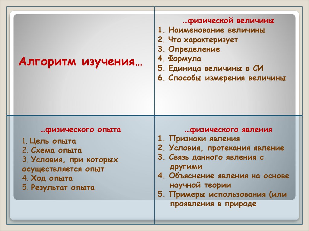 Реализация на уроках физики алгоритмов изучения основных понятий