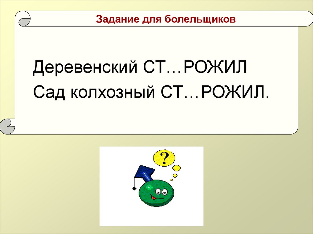 Задание для болельщиковДеревенский СТ…РОЖИЛ