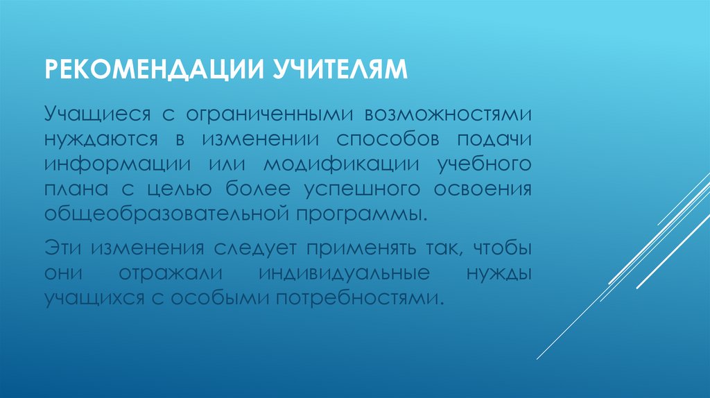 РЕКОМЕНДАЦИИ УЧИТЕЛЯМУчащиеся с ограниченными возможностями