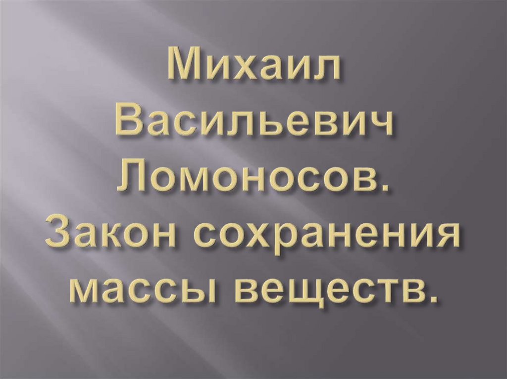 Михаил Васильевич Ломоносов. Закон сохранения массы веществ