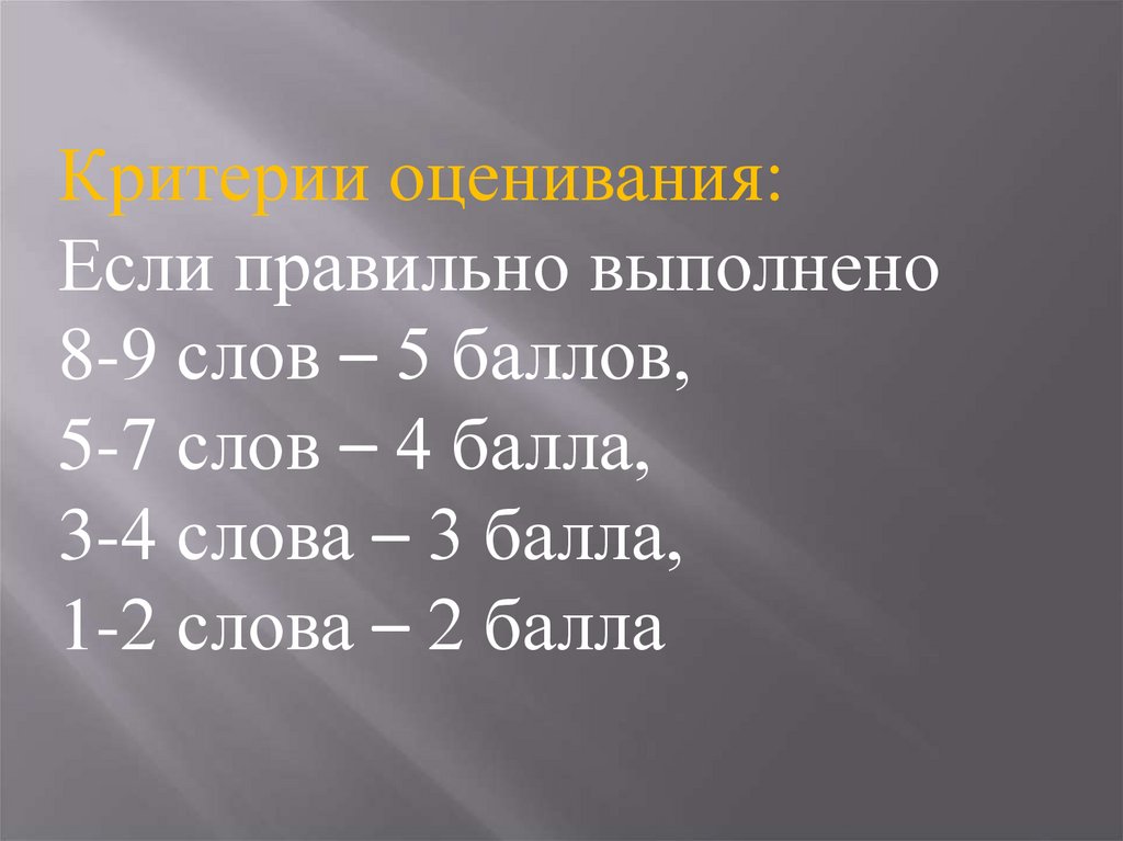 8-9 слов – 5 баллов,