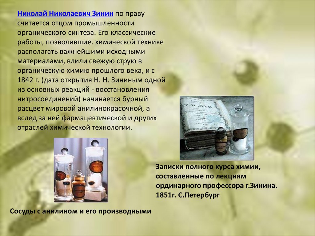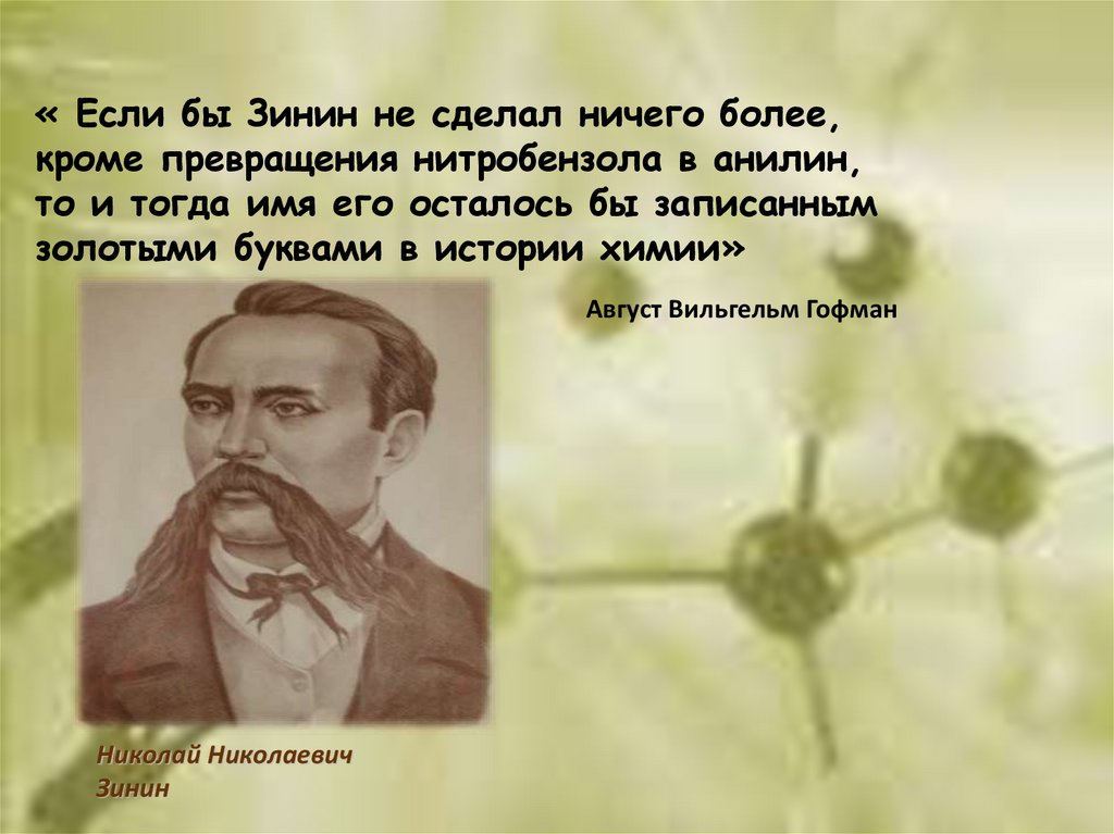 « Если бы Зинин не сделал ничего более,кроме превращения нитробензола в анилин,