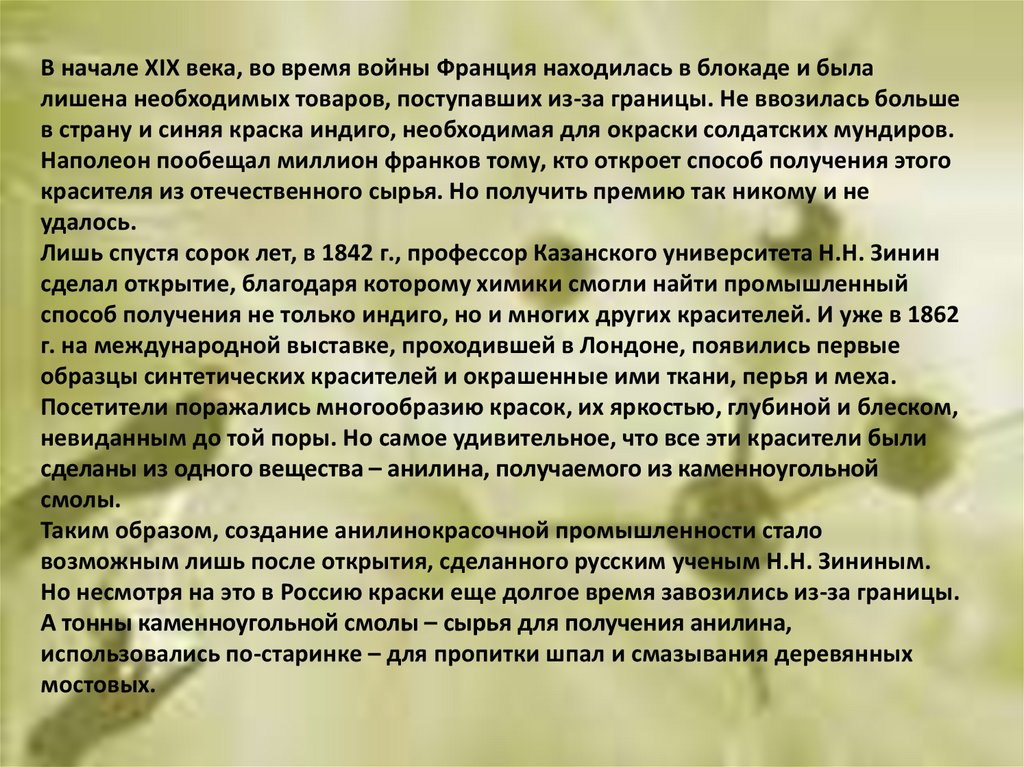 Таким образом, создание анилинокрасочной промышленности стало