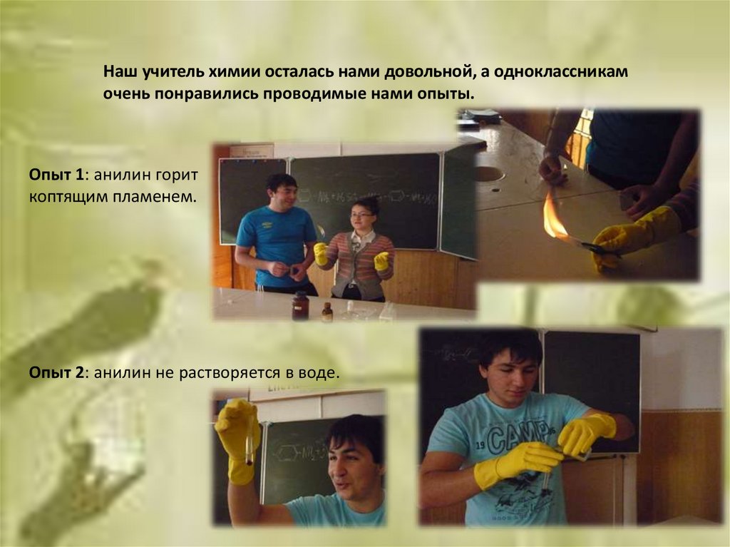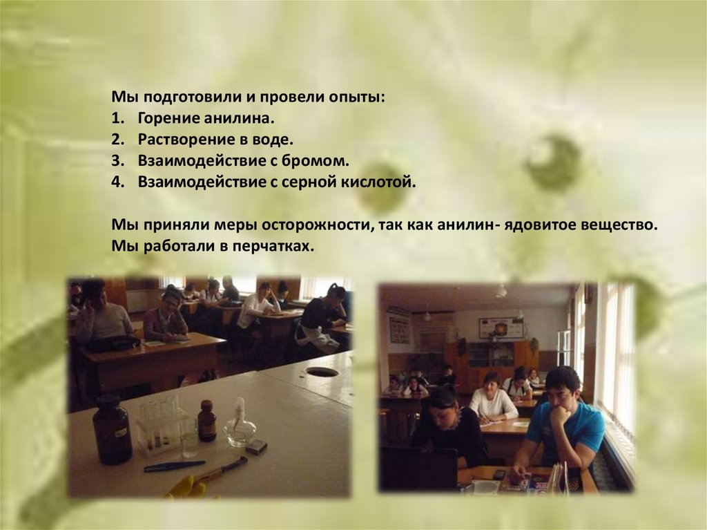 Мы приняли меры осторожности, так как анилин- ядовитое вещество.
