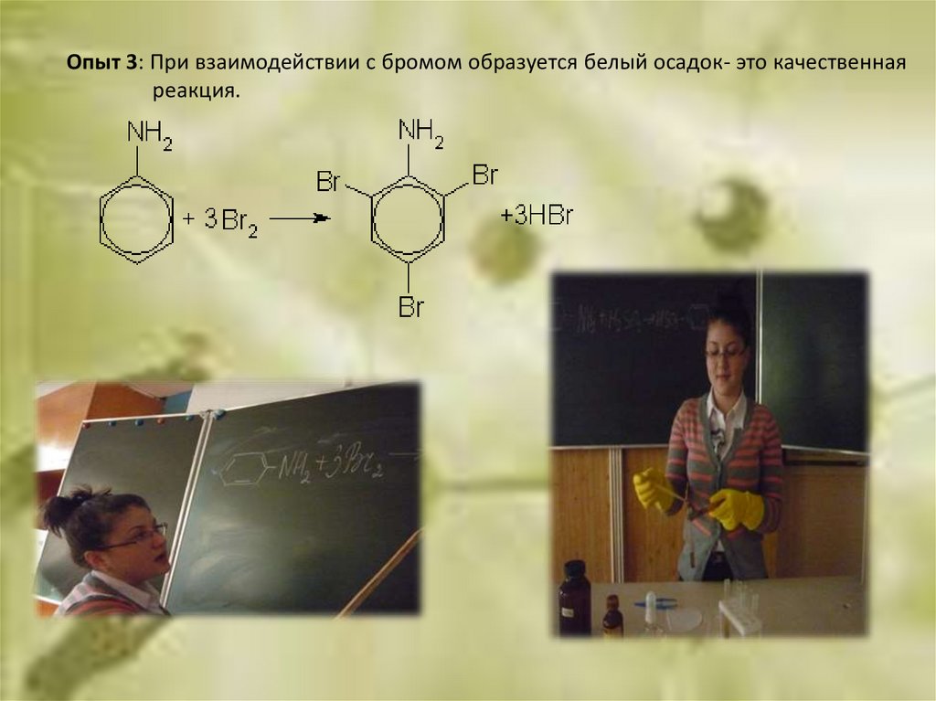 Опыт 3: При взаимодействии с бромом образуется белый осадок- это качественнаяреакция.