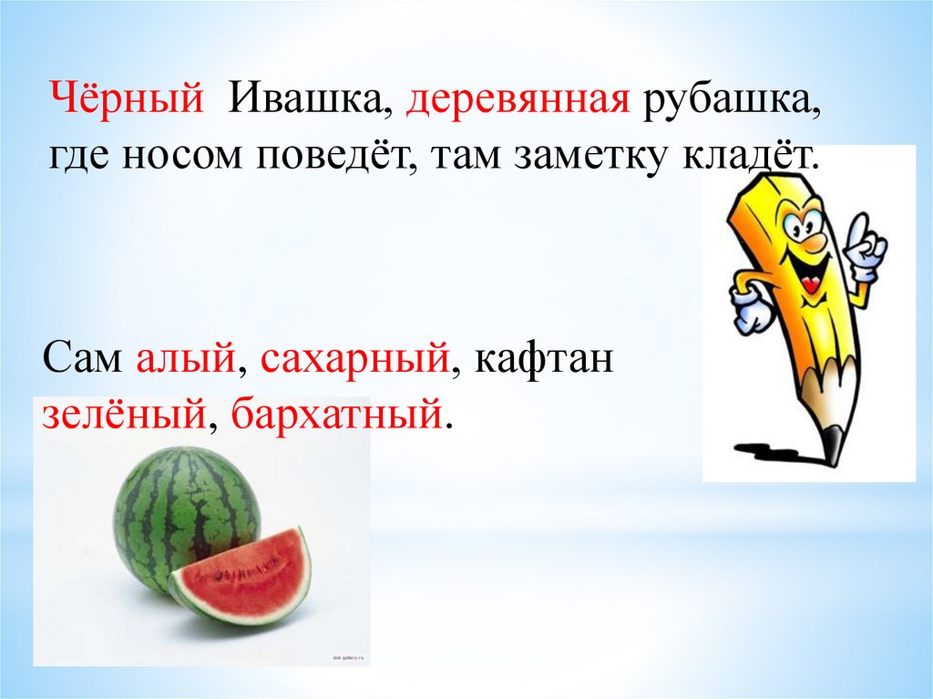 Чёрный Ивашка, деревянная рубашка,где носом поведёт, там заметку кладёт.
