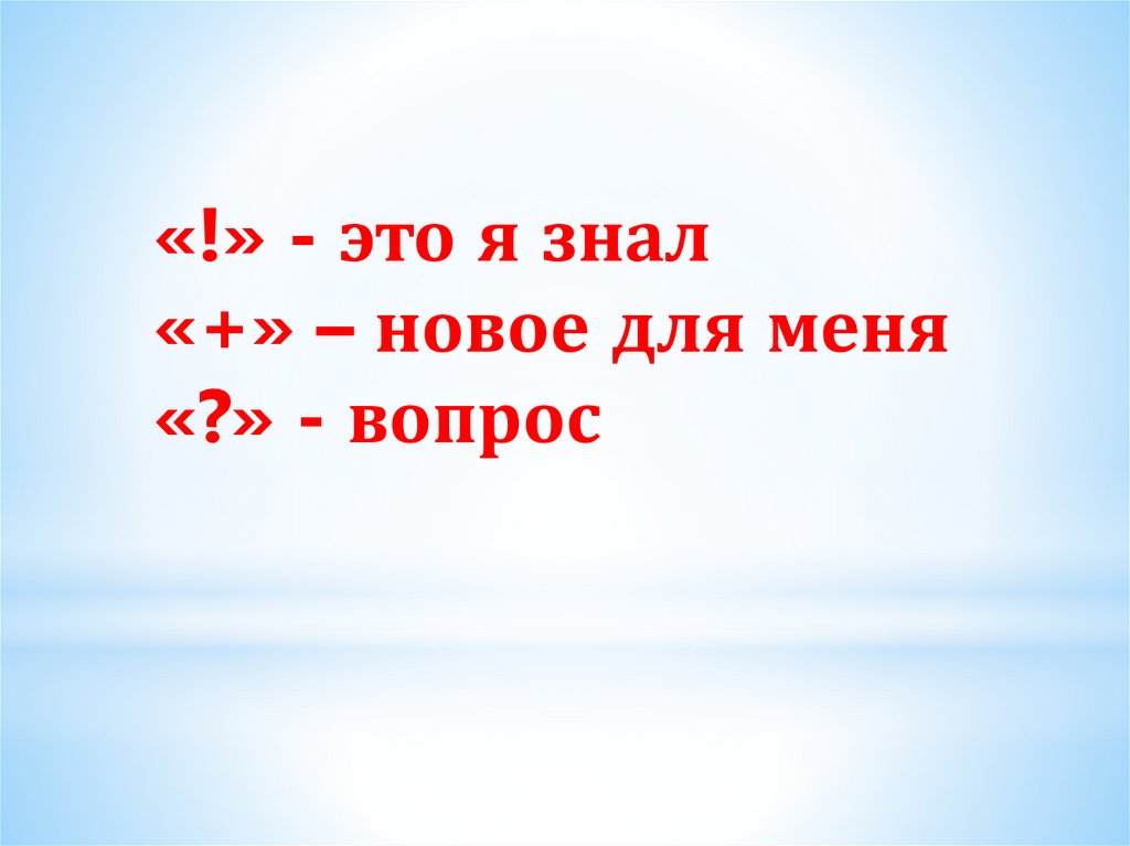 «!» - это я знал«+» – новое для меня