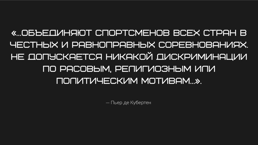 «…объединяют спортсменов всех стран вчестных и равноправных соревнованиях.