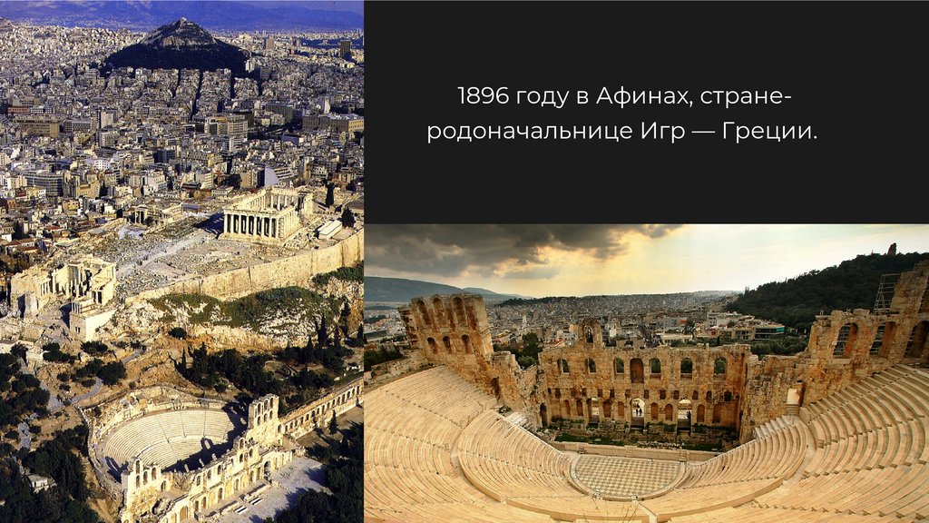 1896 году в Афинах, странеродоначальнице Игр — Греции.9.