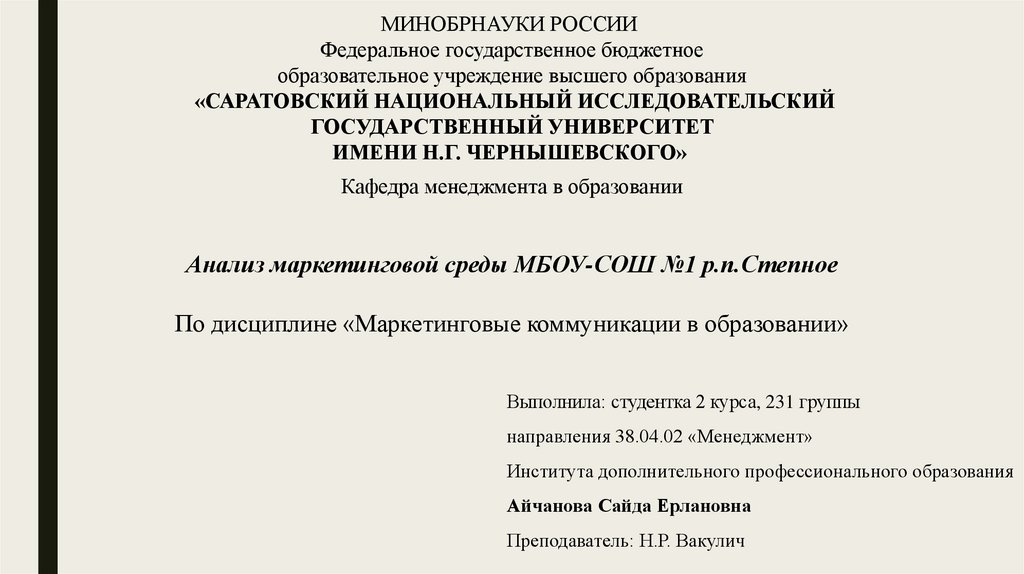 «САРАТОВСКИЙ НАЦИОНАЛЬНЫЙ ИССЛЕДОВАТЕЛЬСКИЙ