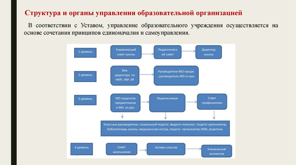 Структура и органы управления образовательной организациейВ соответствии с Уставом, управление образовательного учреждения осуществляется на