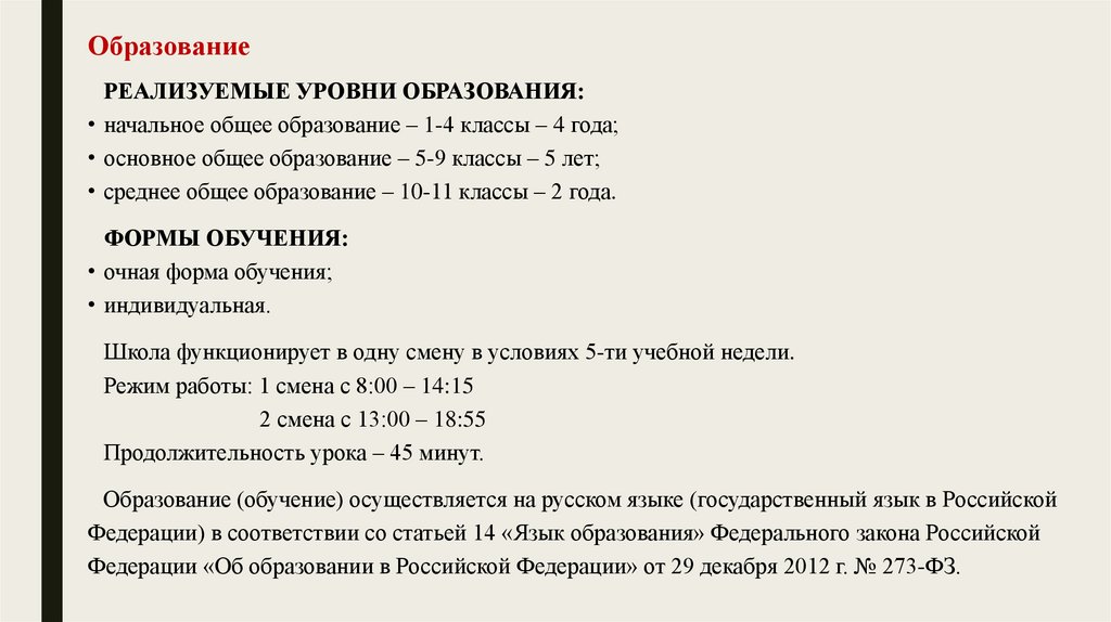Федерации «Об образовании в Российской Федерации» от 29 декабря 2012 г. № 273-ФЗ.