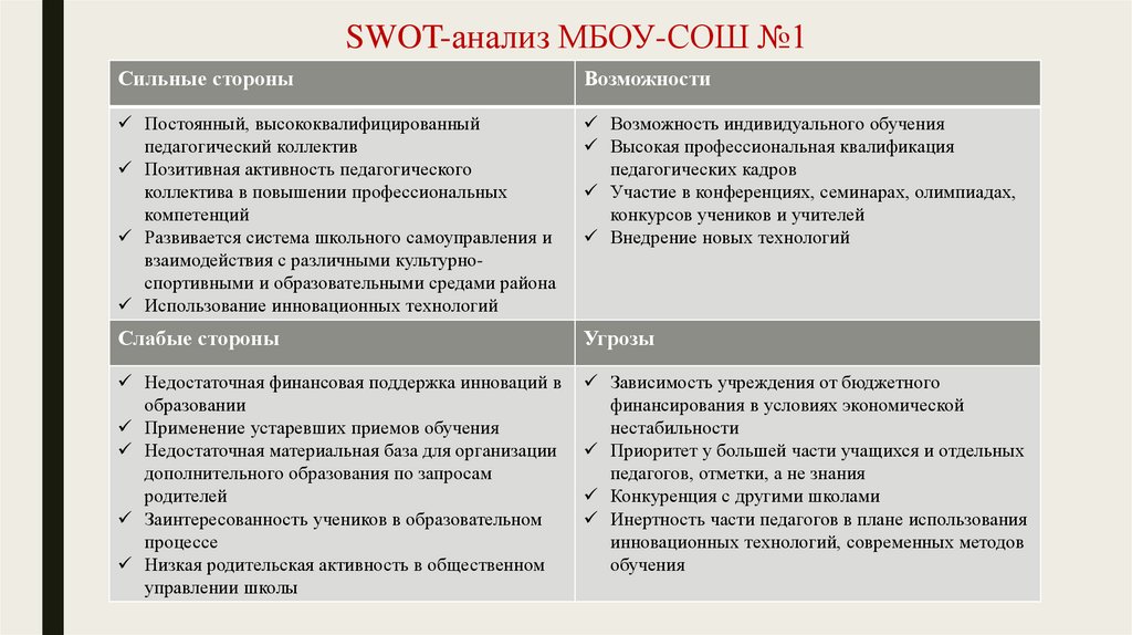 SWOT-анализ МБОУ-СОШ №1Сильные стороны