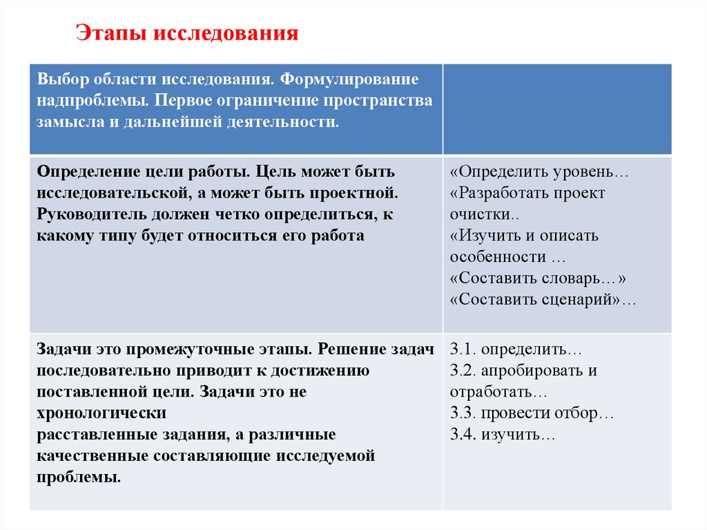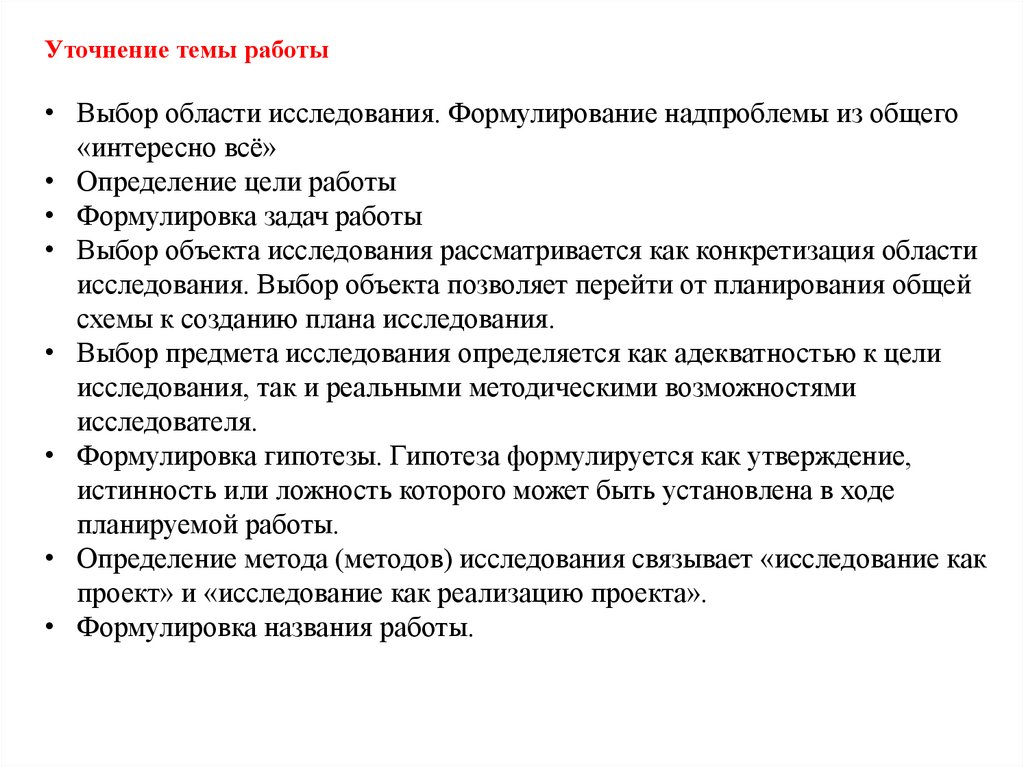 Уточнение темы работы• Выбор области исследования. Формулирование надпроблемы из общего