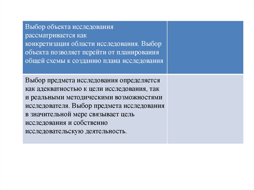 исследования. Выбор объекта позволяет перейти от планирования общей