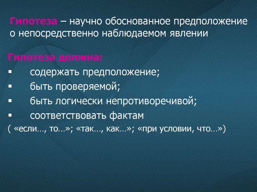 • Формулировка гипотезы. Гипотеза формулируется как утверждение,