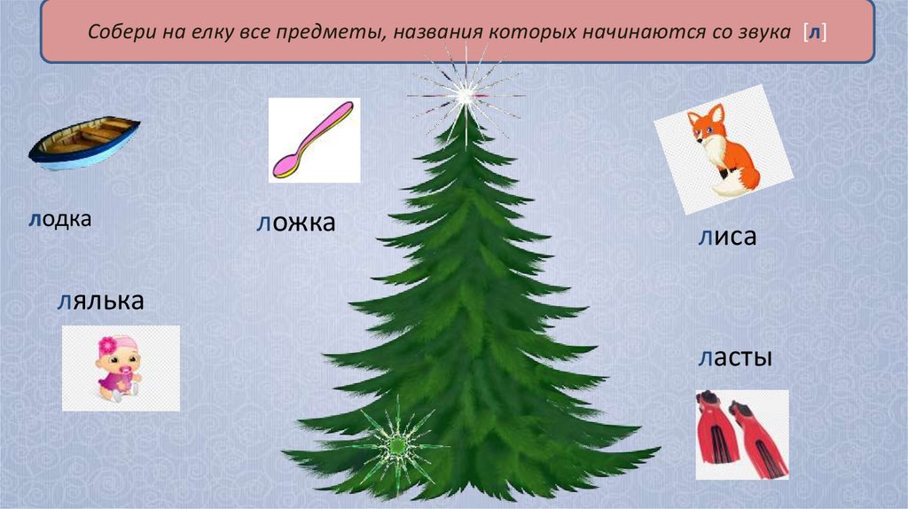 Собери на елку все предметы, названия которых начинаются со звука [л]