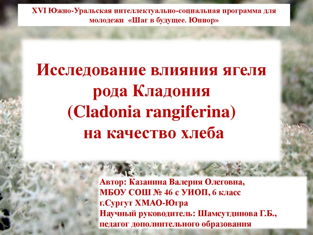 Исследование влияния ягеля рода Кладония (Cladonia rangiferina) на качество хлеба