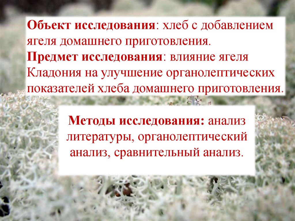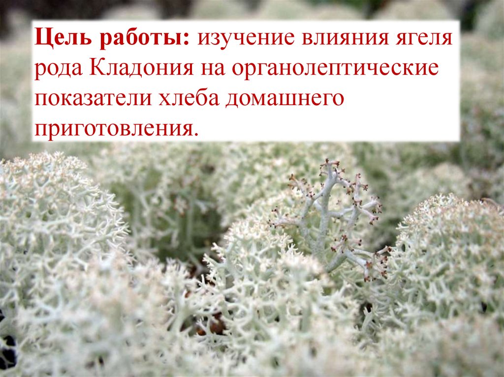 Цель работы: изучение влияния ягелярода Кладония на органолептические